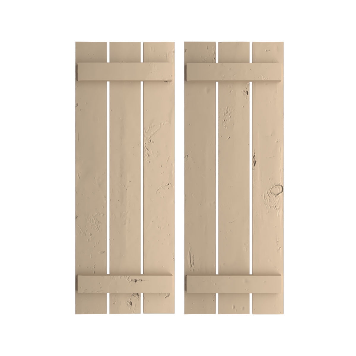 Ekena Millwork 17 1 2 W X 48 H Rustic Three Board Spaced Board N Batten Sandblasted Faux Wood Shutters Per Pair Primed Tan Walmart Com